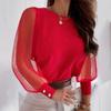 2025 Shirts for Women Fashion Simple O-Neck Lace Floral Sheer Mesh Patchwork Pullover Female's Blouse