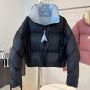 High-end White Duck Down Contrasting Color Bread Clothes Women's Winter New Puff Feeling Thickened Loose Couple Fashion Coat Tide