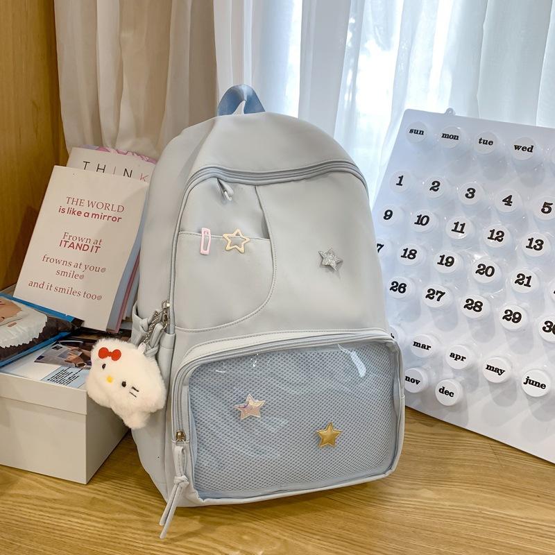 Versatile Simple and Beautiful Female College Student Ins Cute Large Capacity High School Student Backpack Transparent Pain Bag