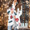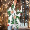 Women's Fashion Casual Christmas Print Medium Length Cardigan Jacket Coat