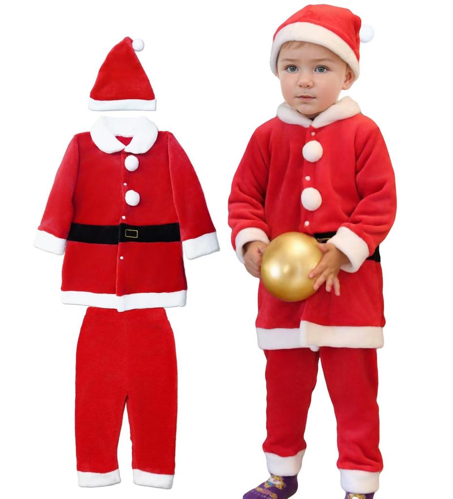 The fluffy texture keeps you warm and comfortable even in the cold winter. Not only for Christmas, but also for everyday cold weather. [Perfect for Christmas parties] This Santa Claus costume is perfect for a variety of occasions, such as Christmas parties, kindergarten and nursery school recitals, and photo shoots. Recommended as a Christmas gift for children this year. Children can create a classic Santa Claus image just by wearing it like their everyday clothes!