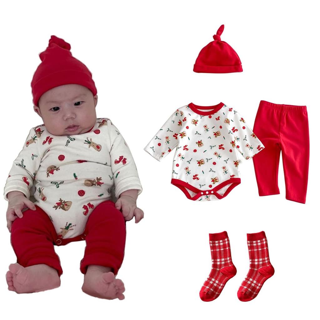 Can be used for a long season! A four-piece long-sleeved romper top and bottom set.