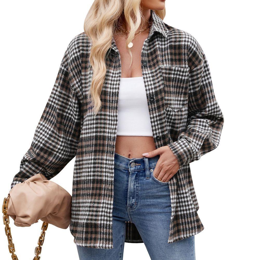 Women's Clothing, Thousand Bird Plaid, Buttons, Flannel, Woolen Shirt