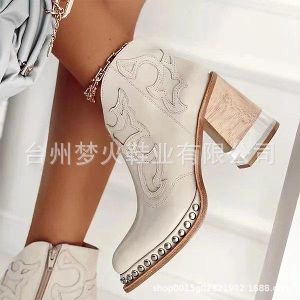 Pointed Solid Color Textile Coarse Heel Skin Tone Viscose Shoes Low Top Casual Round Top Martin Boots