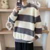 Men's Autumn/Winter Warm Striped Round Neck Sweater - Casual Contrast Color Style