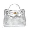 B's Retro Woven Women's Shoulder Tote Bag with Metal Rope Buckle – Large Capacity