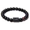 12 Constellation Zodiac Signs Beads Couples Bracelet Natural Black Onyx Stone Elastic Charm Bracelet for Women Men Birthday Gift