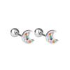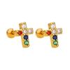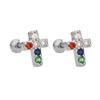 Punk Style Zircon Cross & Moon Stud Earrings with Round Diamond and Screw-Back Design
