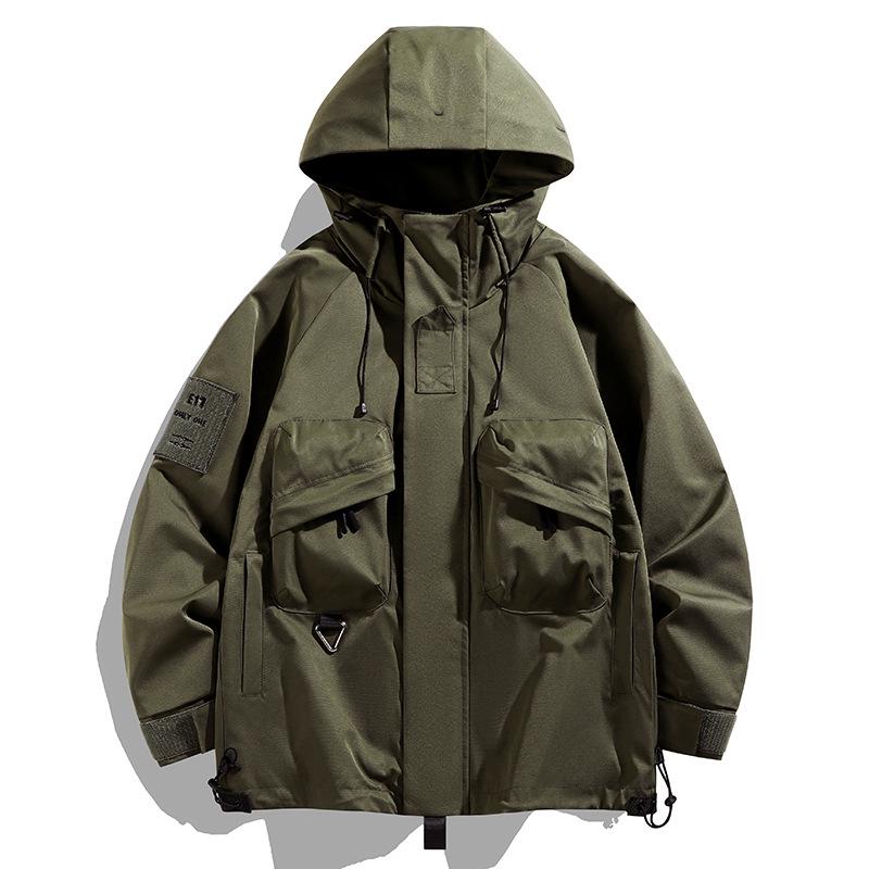 This windbreaker jacket is designed for youthful, casual style during the autumn season. It features a solid pattern and boasts multiple pockets for convenient storage. The jacket is crafted from acetate material, providing a sleek and comfortable wear. The interior is lined with fur made from a chemical fiber blend, ensuring warmth and coziness on breezy days. This jacket combines practicality with modern fashion, making it a versatile addition to any wardrobe.