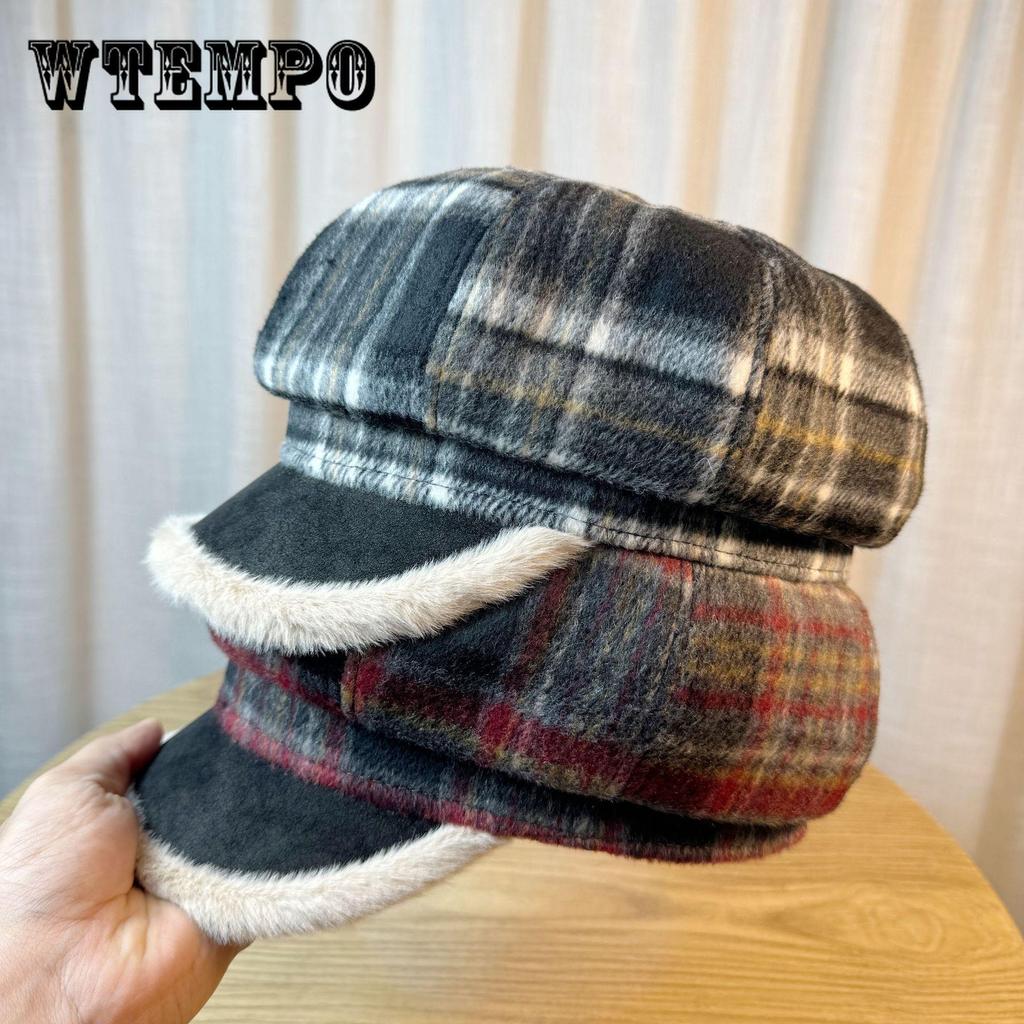 Retro Plaid Plush Star Anise Beret Female Autumn and Winter Warm Painter Hat