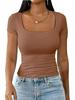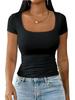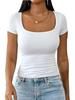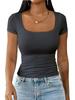 Embrace effortless style with this women's summer casual T-shirt. Featuring a flattering U-neckline and short sleeves, this slim-fit pullover is designed for comfort and elegance. The solid pattern offers a versatile, chic look that's perfect for any casual outing or relaxed occasion. This essential piece is a must-have for your summer wardrobe, combining simplicity with a modern twist.