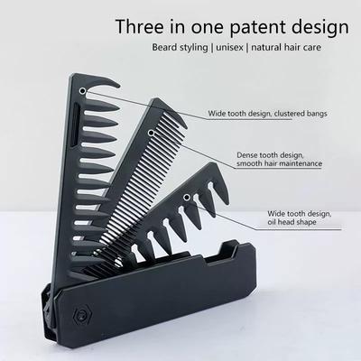 Professional 3 In 1 Pocket Folding Combs Wide Tooth Oil Head Comb Beard Combing Barber Hair Clipper Comb Salon Hair Styling Tool