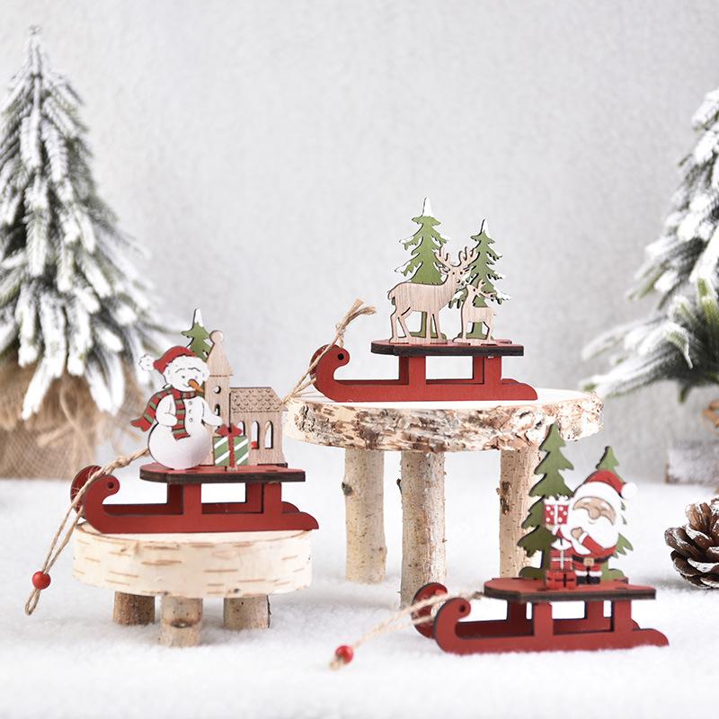 Christmas Decorations, Wooden, Colorful, Assembled Sled, Cartoon Old Man, Window Display, DIY Gifts for Children