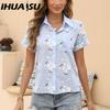IHUASU Women's Fashion Casual Short Sleeve POLO Neck Blouses & Shirts