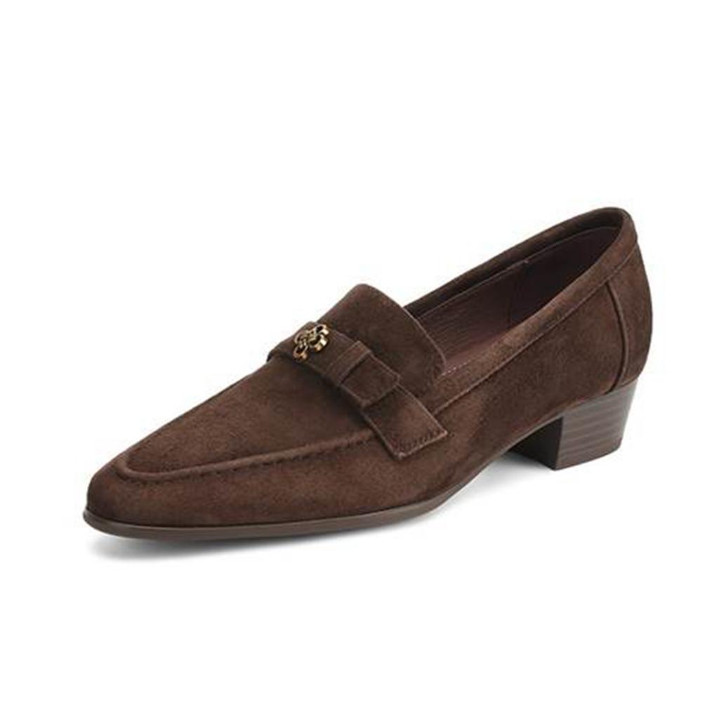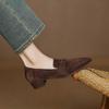 Krazing Pot Sheep Suede Autumn Winter Shoes Metal Decoration Loafers Med Heels Slip On Size 42 Round Toe Slip On Deep Mouth Pumps