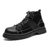 Color Matching Lace-up Platform Locomotive Boots Men's Trendy Casual Leather Boots Spring and Autumn Fashion Wear-resistant Tooling Shoes