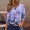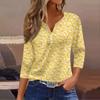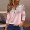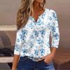 Ladies Casual Fashion V-neck Loose Versatile Floral Print Three-quarter Sleeve Top