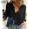 HNXC Women's Fashion Casual Blue Elephant Print Long Sleeve POLO Neck Blouses & Shirts