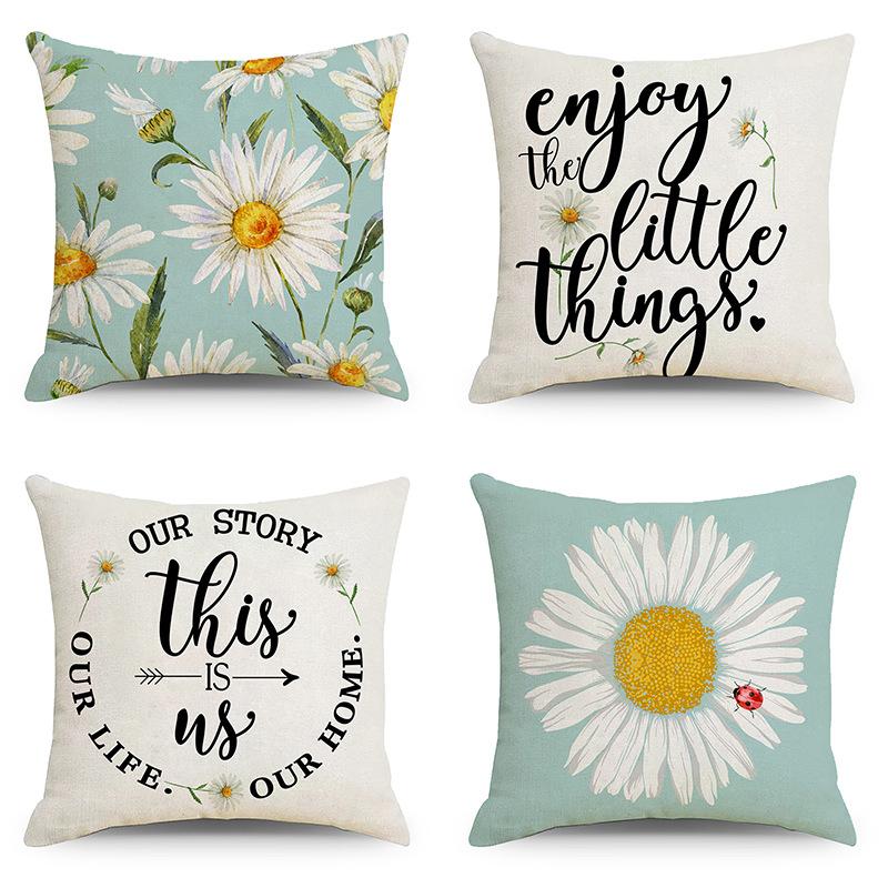 Little Daisy Flower Printed Linen Pillow Cover Home Pillow Cushion Cover