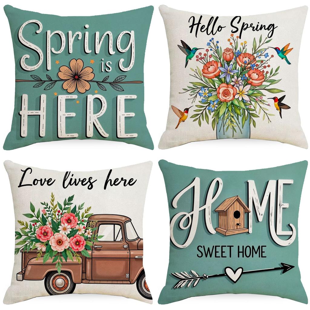 Spring Planting and Flower Print Pillowcase Simple and Versatile Living Room Sofa Pillowcase Linen Breathable Car Cushion