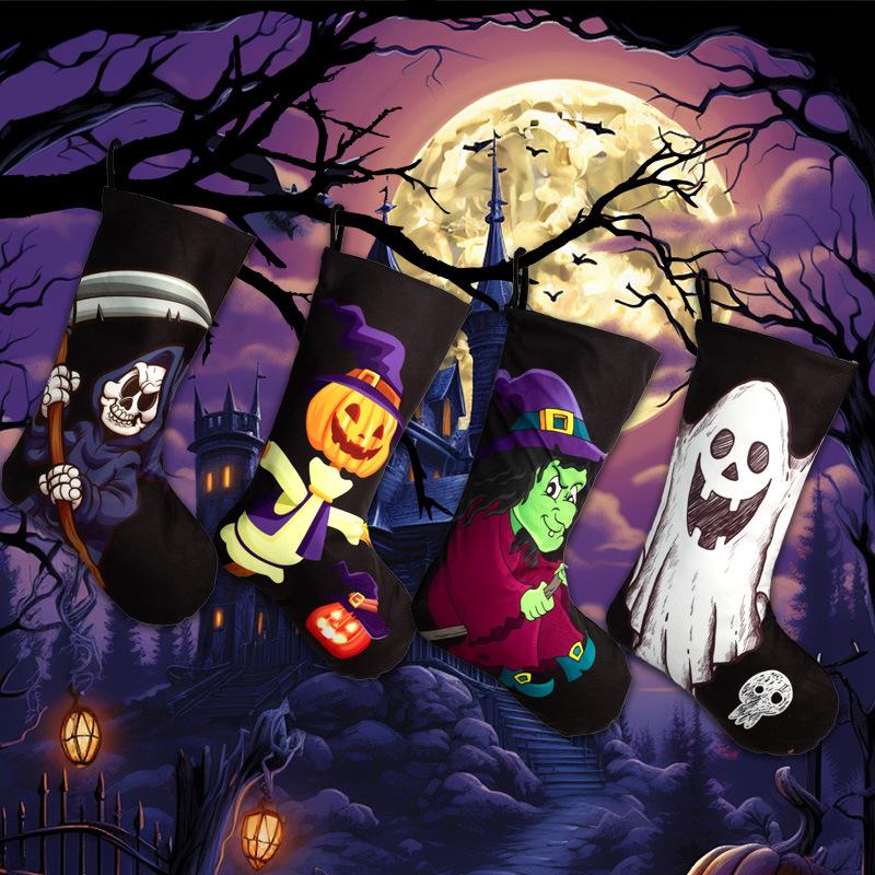Halloween Themed Stocking Gift Bag Unique Sock Pendant Decoration for Candy Treats Perfect Scene Ornament Festive Cloth Bag