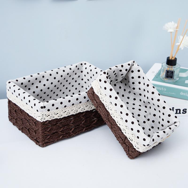Desktop Storage Box Woven Snacks Cosmetics Toy Storage Basket Household Fabric Coffee Table Miscellaneous Items Key Basket