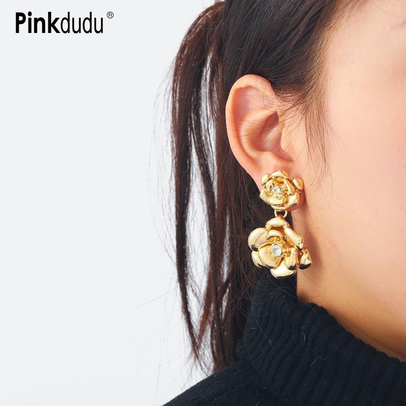 Pinkdudu Gold Plated Zinc Alloy Rose Stud Earring Exaggerated Trendy Earring Elegant Flower Earring PD2202