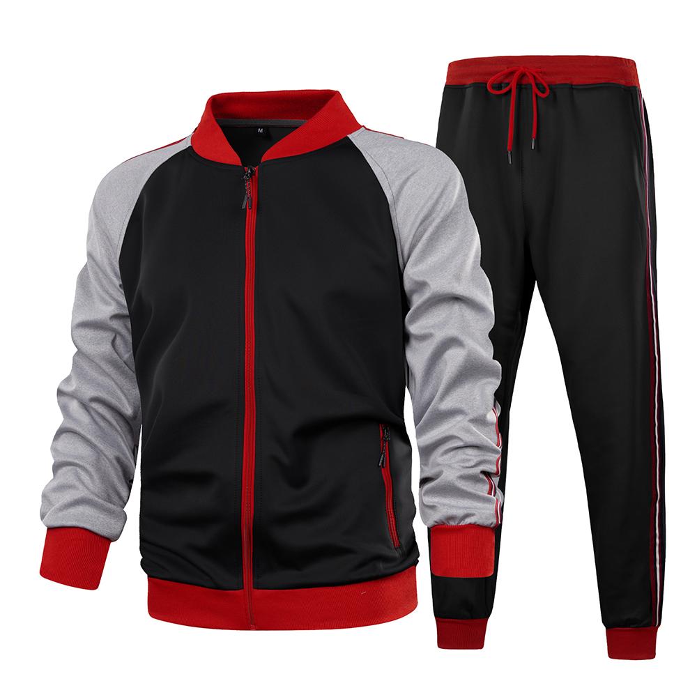 Autumn And Winter Sportswear Men Suit Contrasting Color Mature Retro Color Matching Zipper Jogging Sweatshirt Men Two Piece Set