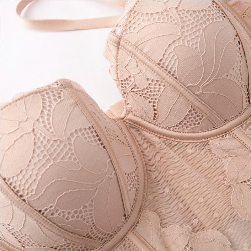 French Lace Fishbone Underwear Sexy Outer Corset Gathered Bra Big Chest Small Breast Bra Bra