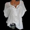 Women Fashion Loose Batwing V Neck Lace Embroidery Short Sleeve Tops Blouse