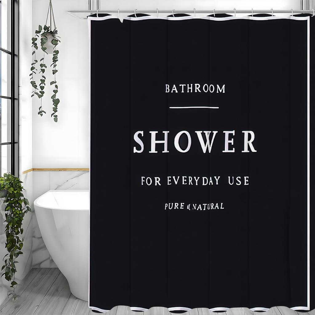 Minimalist English White Black Shower Curtain, Bathroom Decorative Shower Curtain, Waterproof Shower Curtain with Hooks