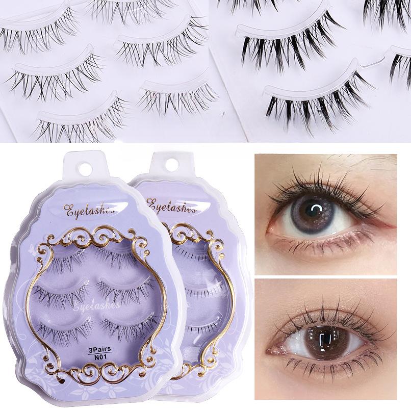 Novice Grafting False Eyelashes Natural Simulation 3 Pairs Of Cross-Curled Transparent Plain Super Soft Short