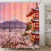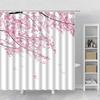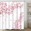Pink Sakura Flowers Shower Curtains Japanese Cherry Blossoms Trees Floral Rustic Garden Landscape Fabric Print Bathroom Decor