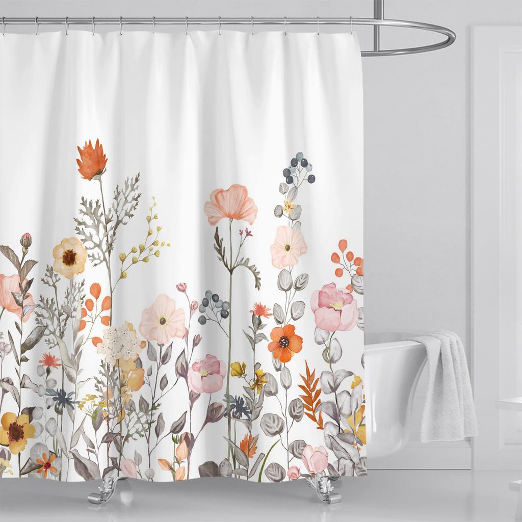 1pc Modern Watercolor Printing Floral Shower Curtain Set with Hooks - Waterproof Minimalist Design for Bathroom Totoro Bathroom