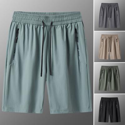 Men Shorts Elastic Waist Mid-rise Breathable Shorts with Pockets Quick Drying Ice Silk Thin Leisure Shorts