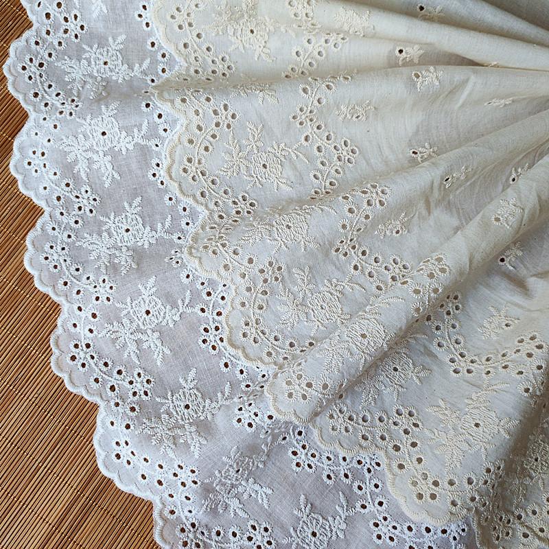 2Meters/lot 20cm Wide Spot Textile Clothing Home Textile Accessories Lolita White Beige Cotton Embroidery Lace Fabric