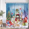 Red Santa Claus Shower Curtains Green Pine Bough Xmas Balls Snowflake Christmas Bath Curtain Set Home Bathroom Decor With Hooks