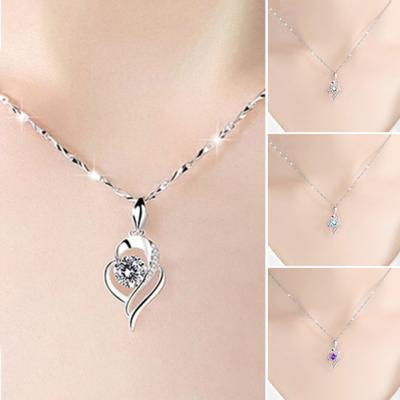 Women Pendant Necklace Heart Rhinestones Pendant Thin Chain Choker Necklace Bright Color Necklace Jewelry Gift