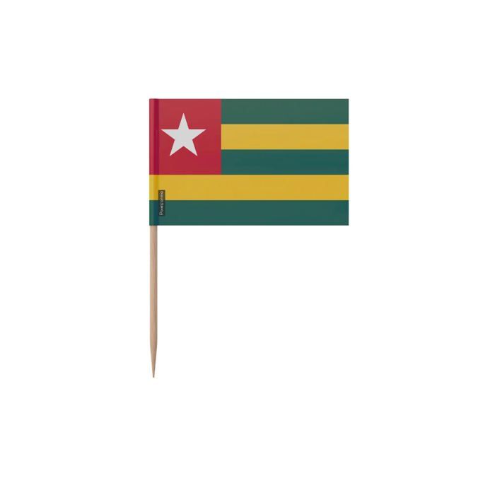 Togo Flag Toothpicks - 10 Cm - 100 Pieces - Adhesive Plastic - Bamboo Stick - Pixelforma