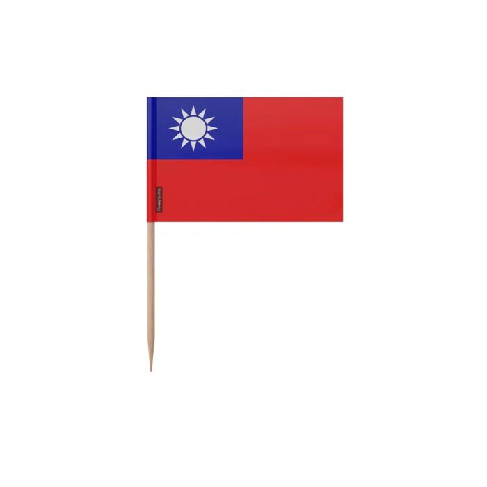 Taiwan Flag Toothpicks - 8 Cm - 100 Pieces - Adhesive Plastic - Bamboo Stick - Pixelforma