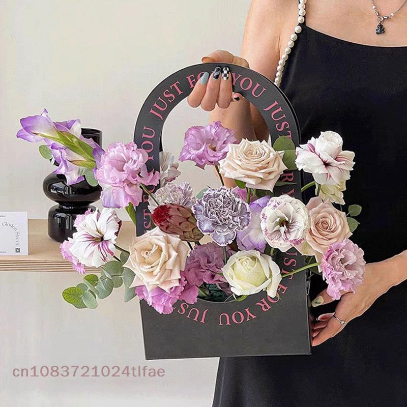1Pc Paper Flower Basket Flower Wrapping Box Gift Bag For Wedding Birthday Christmas Party Flower Bouquet Decor Supplies