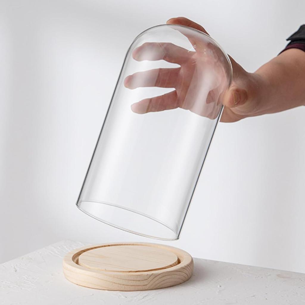 Glass Dome Diameter 7", Decorative Glass Cloche Bell Jar Display Dome, Dust Proof Glass Display Dome with Solid Wood Base Office Home Desktop