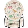 Dinosaur Cotton Cup Coasters with Holder Absorbent Drink Coasters Set for CoffeeTabletop Protection Housewarming Gift Home Decor 6 Pcs