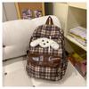 Plaid Backpack Female Retro Junior High School Students High School Students Cute Puppy Leisure Backpack.