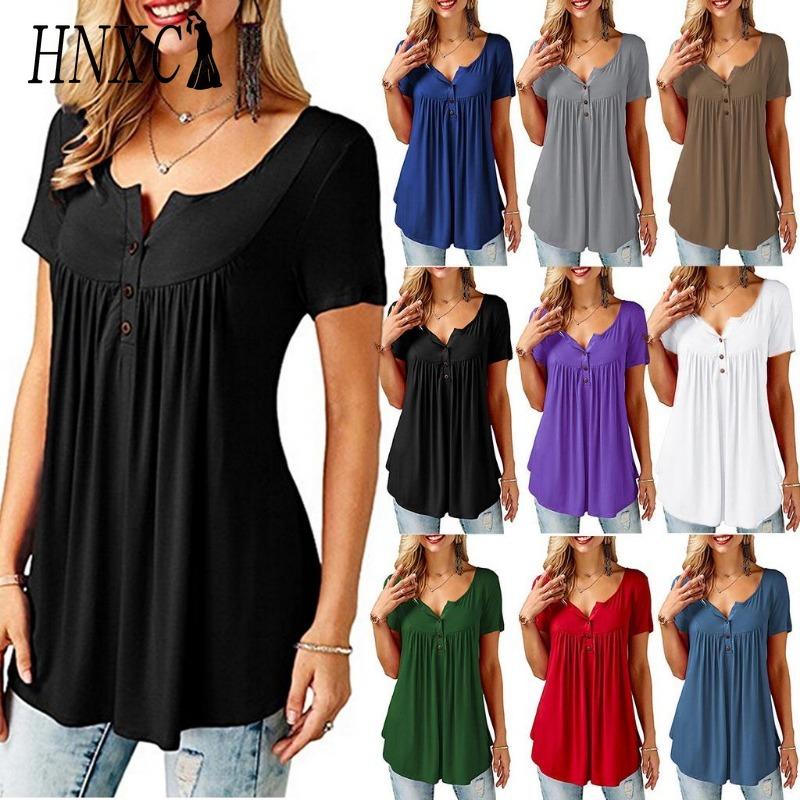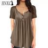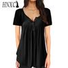 HNXC Women's Fashion Casual Solid Color Print Short Sleeve Blouses & Shirts