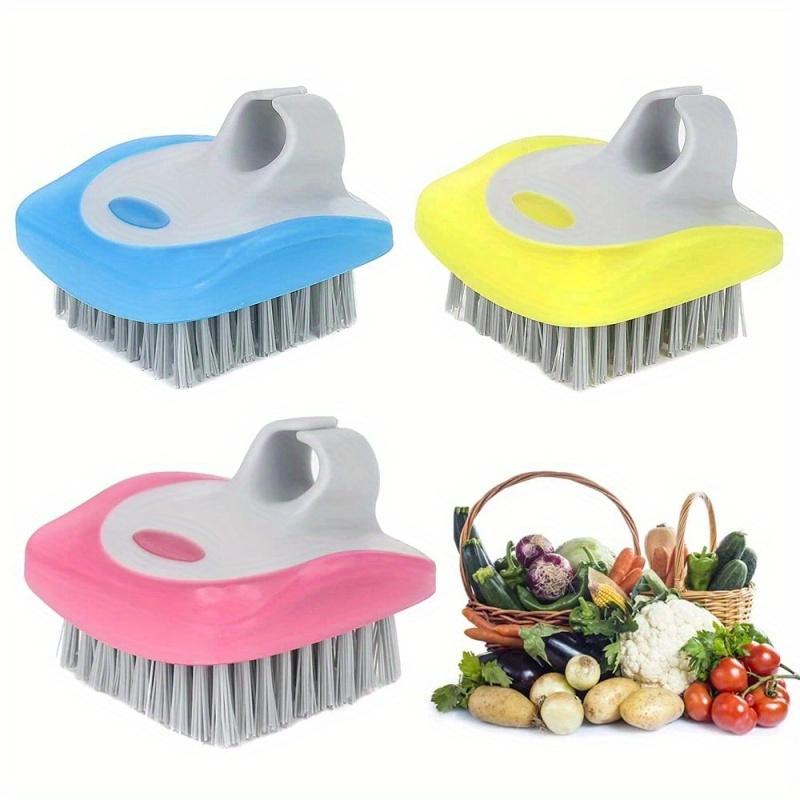 1 PC/2PCS Multi Purpose Vegetable Brush Set Plastic Handle,Non Electric Reusable Fruit and Potato Scrubber with Medium Firmness Bristles,Silicone Edge