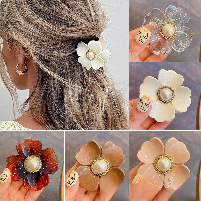 A Large, Stylish Hairpin for The Back of The Head with An Egg Flower and Pearl Hairpin