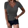 Spring and Summer Solid Color Pit Stripe Deep U-neck Top Short Sleeved Sexy Casual Fashion Women's T-shirts