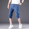 Summer Thin Dark Denim Shorts Men's Cropped Pants Loose Straight 7-point Denim