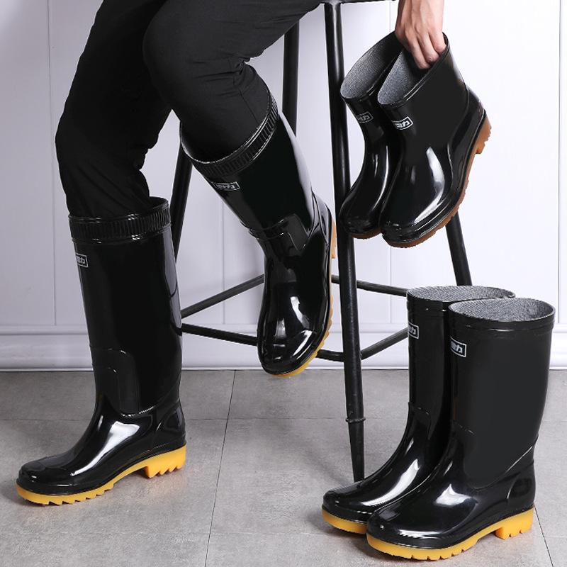 Labor Insurance Round Head Black 807 Men's Pull-back Rain Shoes, Tall Pvc Non-slip Beef Tendon Sole Pull-back Rain Boots